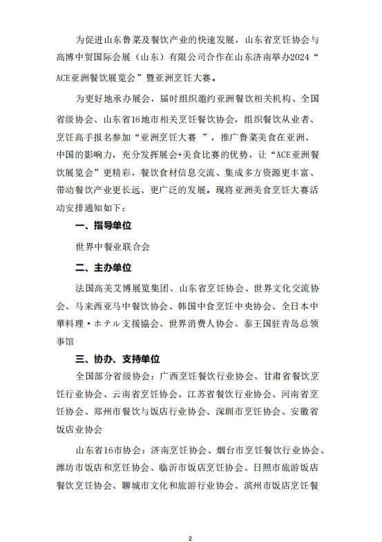 舉辦2024“ACE亞洲餐飲展覽會”暨亞洲烹飪大賽的通知