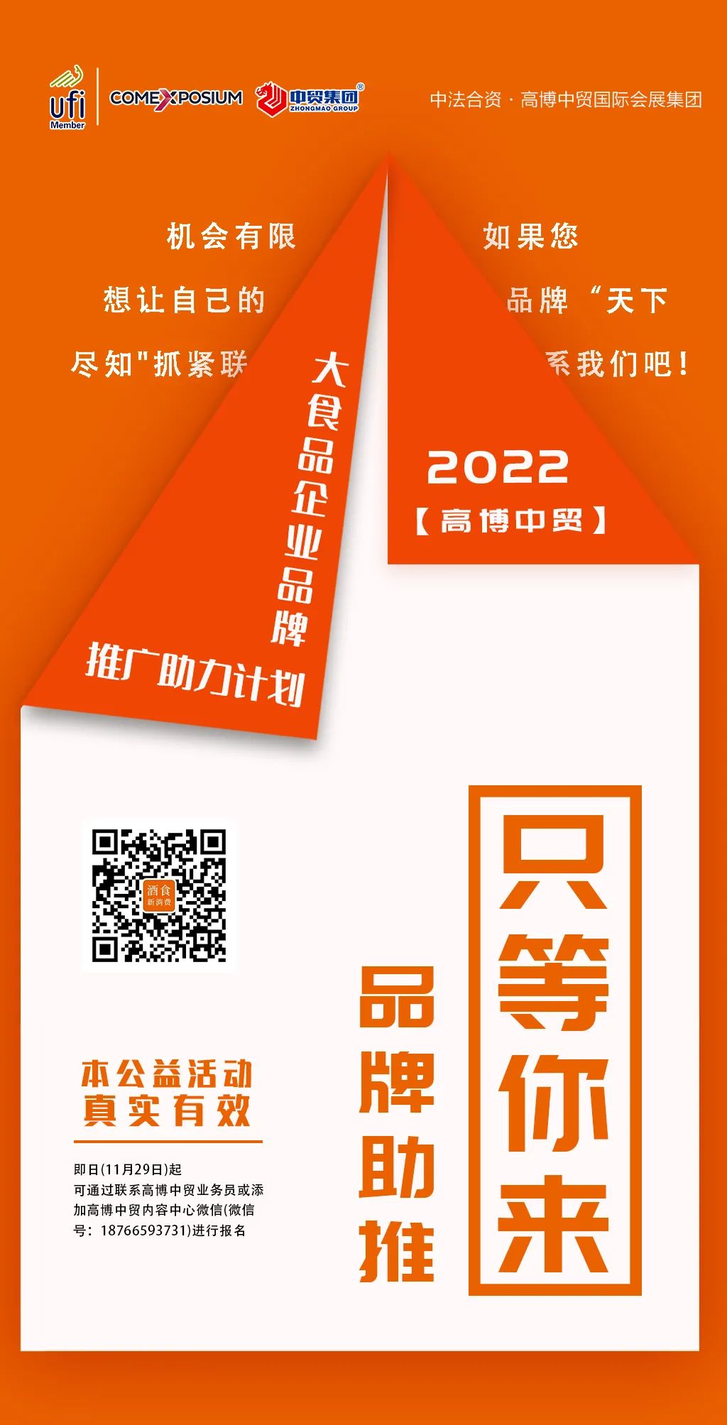 本公益活動(dòng)真實(shí)有效,即日(11月29日)起,可通過(guò)聯(lián)系高博中貿(mào)業(yè)務(wù)員或添加高博中貿(mào)內(nèi)容中心微信(微信號(hào):18766593731)進(jìn)行報(bào)名,我們將根據(jù)報(bào)名順序逐一與企業(yè)進(jìn)行聯(lián)系,著手排期進(jìn)行助力計(jì)劃。
